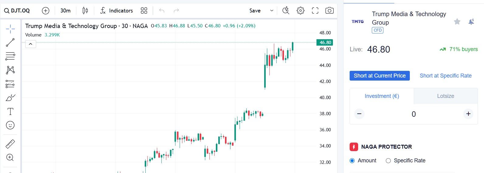 Con trump stock xD Me doy cuenta de que va loco duro hoy. DJT para mí es, con mucho, la acción más interesante para ver el mes pasado en Naga, para ser honesto. Movimientos locos.