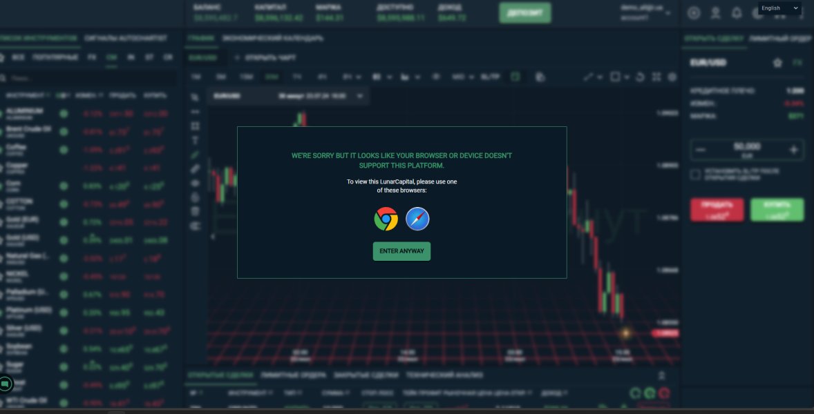 I can't log in to Lunar Capital in the browser or access the platform, so I can't withdraw or withdraw money. I'm really disappointed