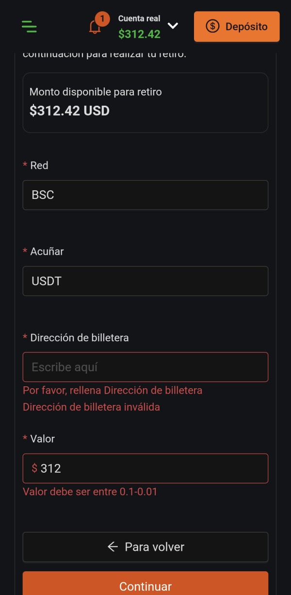 Estuve trabajando aproximadamente 6 meses con este broker, venia realizando retiros con normalidad y después de este tiempo me bloquean por un supuesto incumplimiento de las normas. Al momento de realizar un retiro en el monto a retirar solo me permite que sea entre 0.1 y 0.01, prácticamente nada, entonces por ende extiendo mi solicitud a traves de ustedes para recibir su ayuda. Adjunto imágenes del Deposito, del primer y último retiro de el saldo en la cuenta y de la incapacidad para retirar.