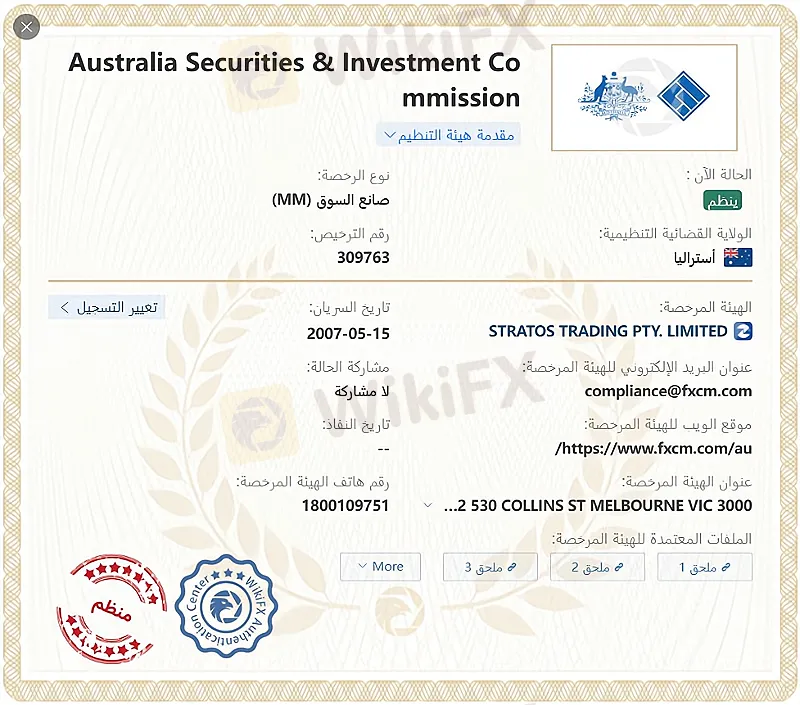 - هيئة الأوراق المالية والاستثمارات الأسترالية (ASIC) – رقم الترخيص (309763).