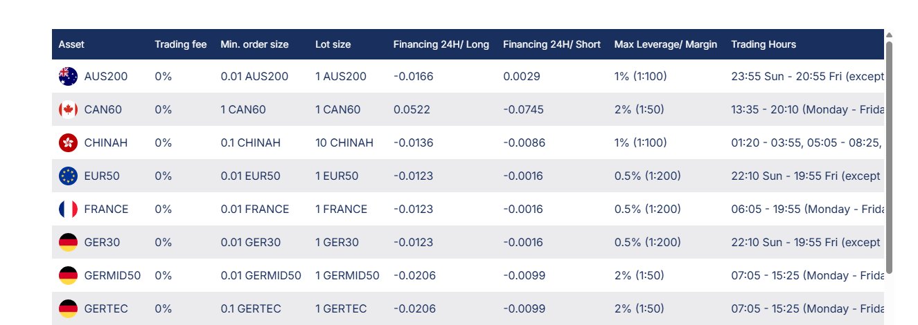 As a trader who trades only indices, I find it cool to trade such a variety of inidces because currently there is high volatility on all markets due to geopolitical intense and wars. It's my first time seeing how a broker offers high leverage up to 1:200 for trading indices. Spreads are kinda wider than usual, but at least I don’t lose a lot on swap fees which is a real deal.
