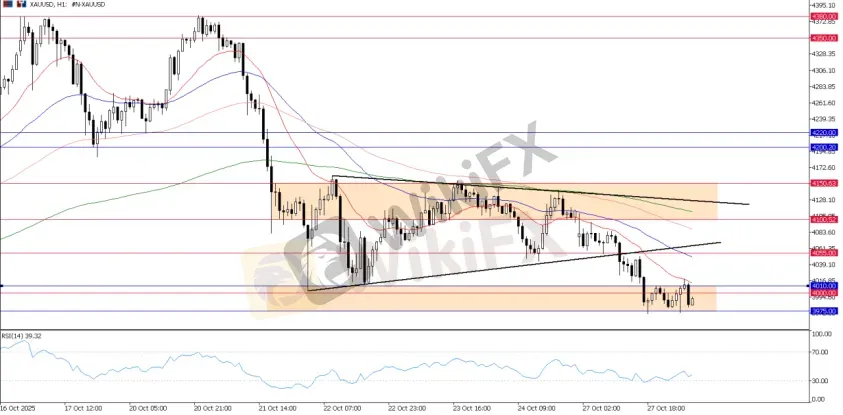 Gold extended its corrective move on Monday, briefly breaking below the key $4,000 psychological level as markets positioned cautiously ahead of this weeks Federal Reserve meeting. The metal continues to face selling pressure, with traders testing the lower boundary of the recent range during the early session.