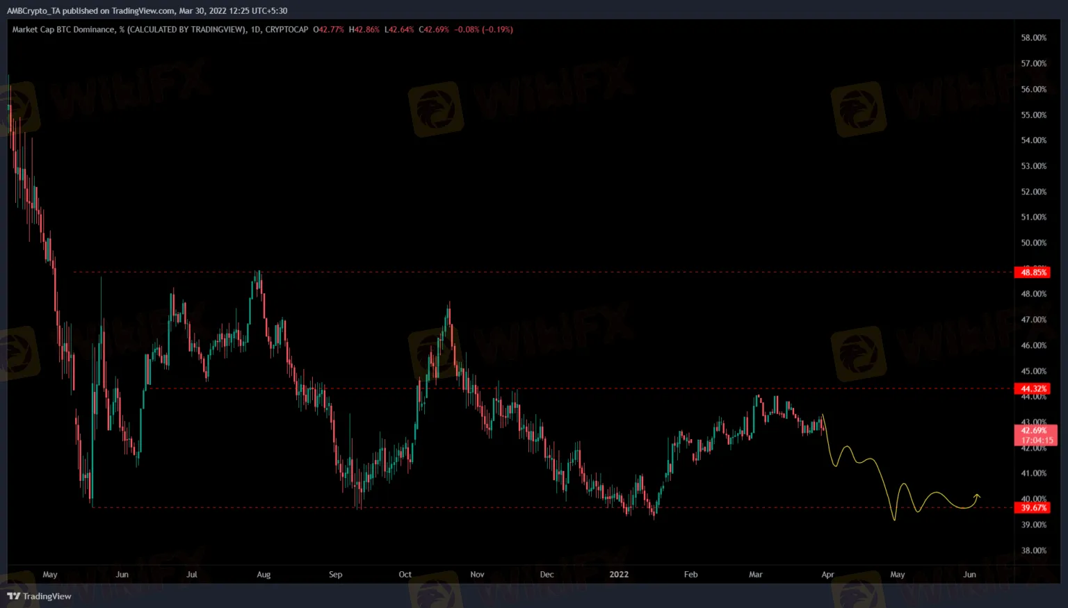 Another observation is that the dominance of Bitcoin reduces during an altseason. Currently, the dominance of BTC is hovering around 42% after a rejection at 44%. From the looks of it, this retracement will extend, pushing BTC dominance to 39% or 40%.