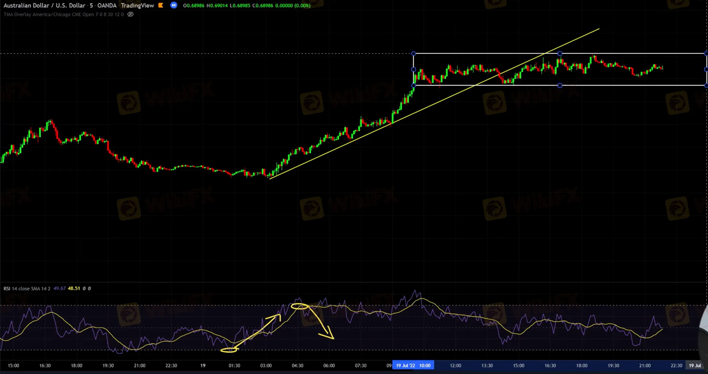| Deviation | The price reaches a new high, and the RSI high moves down | Bearish deviation |