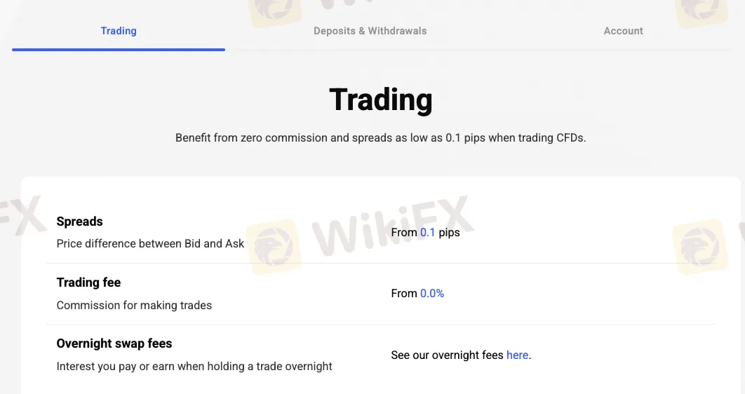 - Forex: Tight spreads (no commission) starting from 0.0 pips on major pairs.