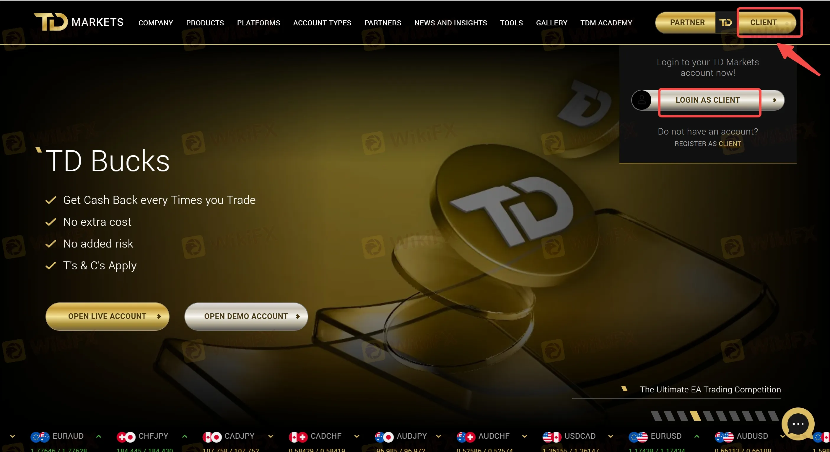 Visit the TD Markets website and click on the “CLIENT” button.