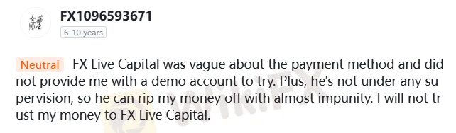 While many brokers operate in grey areas, the data regarding FX LIVE CAPITAL is black and white. Despite any claims the broker might make about its legitimacy, third-party verification tells a different story.