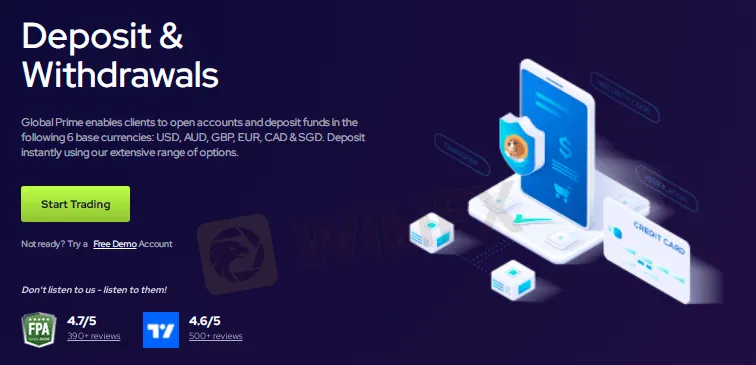 Con Global Prime los clientes pueden operar en los mercados de forex, CFD y materias primas. El depósito mínimo requerido es de $200