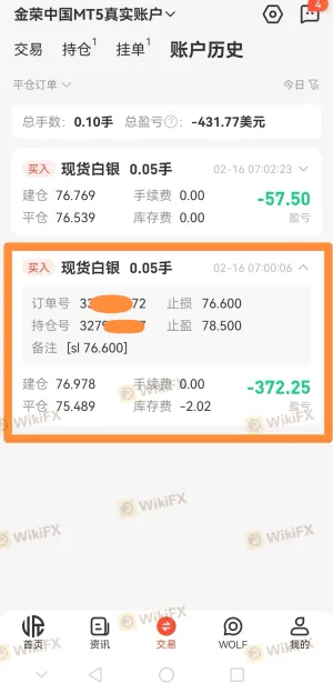 Instrumento ng trading: London Silver Volume ng trading: 0.05 lots Presyo ng pag-open: 76.973 (long position) Presyo ng take-profit: 78.5 Presyo ng stop-loss:, 76.6 Presyo ng market sa unang minuto ng pag-open: Pinakamataas 78.485, Pinakamababa 76.594 Presyo ng aktwal na pag-close ng platform: 75.489, mas mababa nang malaki sa aking stop-loss price, at mas mababa nang malaki sa market price. Ang platform ng Jinrong China ay pinaghihinalaan na nagtatagal ng ilegal na trading. Bukod pa rito, ang pinakamataas at pinakamababa na presyo ay napakalapit sa aking take-profit at stop-loss settings, may hinala na ang mga presyo ay artipisyal na itinakda, at malaki ang pagkakaiba sa mga market quotes ng ibang platform sa parehong oras. Hinihiling ko ang interbensyon ng inyong complaint platform.