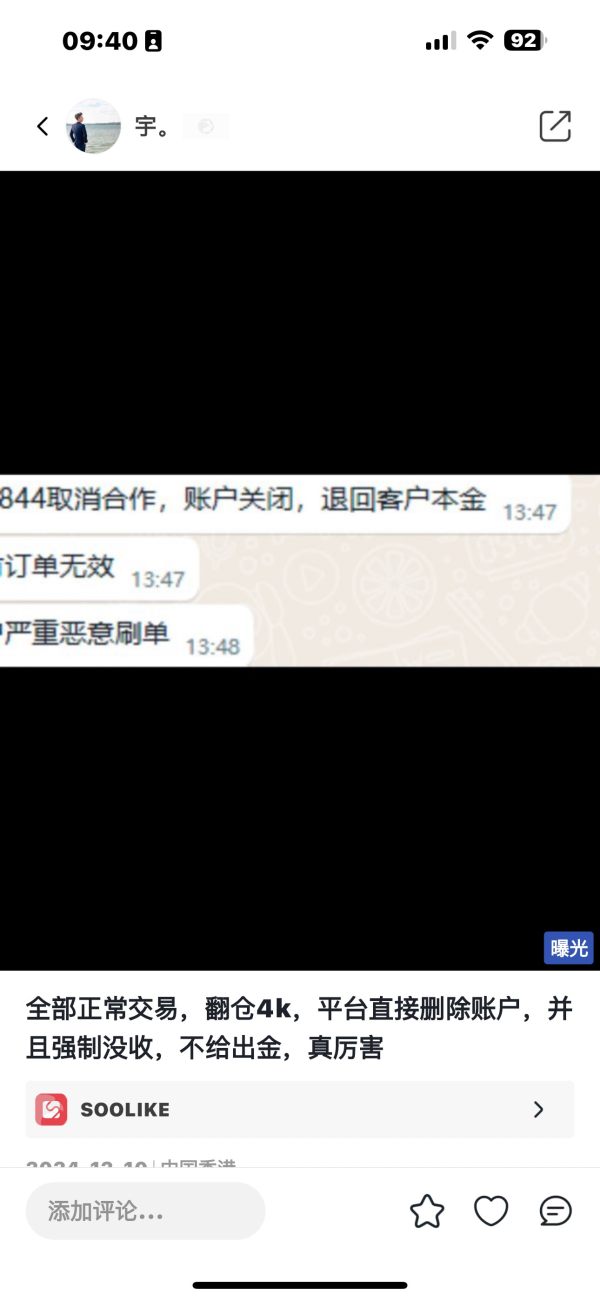 Hindi nagbigay sa akin ng platform ng account para sa komisyon sa pag-ttrade at binura ang aking account sa komisyon, mabagal ang pag-execute ng trade.