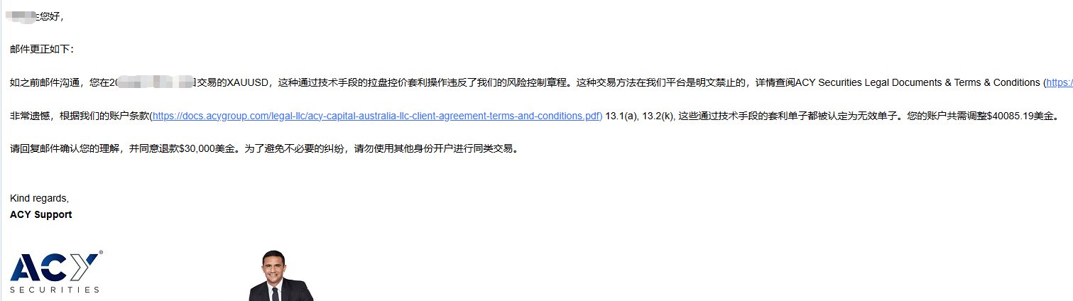 我是个做外汇的老散户了,最近在ACY的经历真的让我大开眼界。简单说就是:你亏钱没得说,你只要赚钱,他们就有一万种理由把你的钱拿走,而且吃相极度难看。 1. 事情经过:怎么赚的怎么被扣的 我在ACY入金了3万美金。也就是赶上行情好,我自己手动交易,顺势拿了$40,085.19美金的利润。 结果出金的时候卡住了。平台发邮件说我“违规交易”,涉嫌“拉盘套利”。 看到这封邮件我都气笑了。我一个散户账户里就几万美金,我拿头去拉动国际外汇市场的盘面?我要有这本事,我还用在你们平台玩? 2. 最恶心的操作是ACY反复横跳,一开始我提供了所有KYC资料,也解释了交易逻辑。平台硬要说我违规,发邮件通知我要扣掉 $32,879.19 的利润。 说实话,那时候我只想赶紧跑路。为了保住本金,我忍着恶心同意了扣除这部分利润,只求把剩下的钱和本金给我出了。 结果呢?同意了也不给出金,拖了我将近一个月。 一个月后,平台突然变卦了,说之前的处理不算数,现在的决定是:$40,085.19 的利润全部扣除,一分不给,只退本金。 大家看懂这个逻辑了吗? 一开始扣一部分,看我好说话(其实我是被资金安全吓到了),拖一个月觉得不过瘾,干脆全吞了。这就不是风控,这就是明抢。 3. 结合新闻看,这就是个惯犯 我本来以为是我倒霉,直到前两天看到wikifx的一篇报道:《警惕!问题平台ACY推出“游客模式”……》。 这篇文章大家可以去搜一下,里面提到了一个很关键的点: ACY后台有系统设置,只要账户盈利超过20%,系统就会自动标记“异常交易”,然后冻结资金。 这就对上了! 这就解释了为什么他们一定要扣我的钱,因为在ACY的眼里,盈利=违规。他们的COO Ashley Jessen还在外面吹嘘什么“游客模式”是金融创新,实际上就是个引流的幌子,把人骗进来,亏了是你的,赚了是他们的。 我现在已经向ASIC投诉了,证据我也都留存了。发这个贴就是给还在ACY或者准备去ACY的朋友提个醒:别信什么大平台、老牌子的噱头。 这种随意修改处罚决定、想扣多少扣多少的平台,没有任何信誉可言。只要你赚钱,你就是“拉盘”。 哪怕你只是个几万美金的小散户。这就是个杀猪盘。 那个所谓的“游客模式”也是一样的套路,让你先尝甜头,最后实盘收割。我的4万多美金利润现在还在他们嘴里,大家千万小心!
