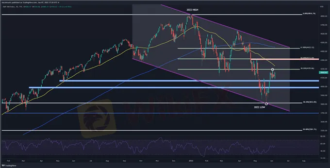 Sa pagtingin sa pang-araw-araw na chart ng S&P 500 , lumalabas na ang index ay nasa consolidation mode, na nakulong sa pagitan ng teknikal na suporta sa 4,070/4,050 at paglaban malapit sa 4,195, isang lugar na tinukoy ng 38.2% Fibonacci retracement ng 2022 na pagbaba. Dahil dito, kung ang mga presyo ay lumampas sa tuktok na bahagi, ang bullish impetus ay maaaring tumaas, na naglalantad ng 50-araw na simpleng moving average, na sinusundan ng 4,313.