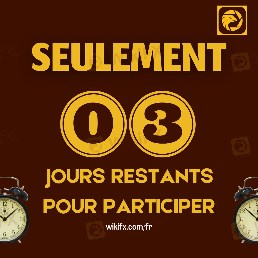 N'oubliez pas, le temps presse ! La fin de la campagne approche rapidement. Participez dès maintenant et transformez votre expérience de trading en ligne avec WikiFX !