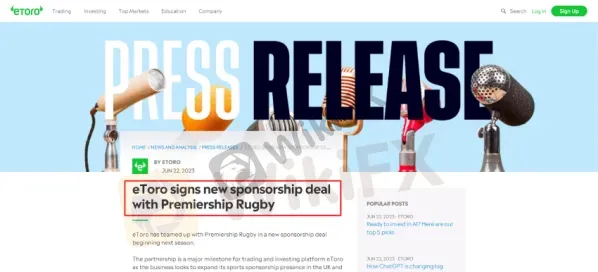 Extrait:eToro, une plateforme de trading et d'investissement de premier plan, a établi une nouvelle collaboration avec Premiership Rugby qui débutera lors de la prochaine saison. Cette association représente une avancée cruciale pour eToro, qui s'efforce de renforcer sa présence en tant que sponsor dans les sports britanniques et d'attirer de nouvelles populations, en capitalisant sur son rôle actuel de sponsor principal des clubs de football de la Premier League.