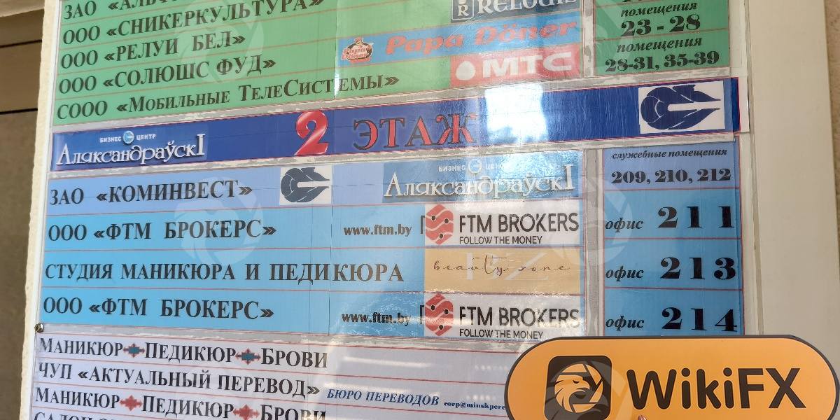 निरीक्षण दल ने मिन्स्क के नगर में इमारत पर पहुंचा, जो एक मजबूत वित्तीय और वाणिज्यिक वातावरण वाला एक गुदगुदाहट भरा क्षेत्र है। निरीक्षण दल ने सफलतापूर्वक इमारत के पैनोरामिक दृश्यों की फोटोग्राफी की और इमारत के बाहर FTM Brokers लोगो को स्पष्ट रूप से देखा। लॉबी में प्रवेश करते ही, उन्हें किसी और सूचना के बिना रुकने की अनुमति दी गई। कंपनी का साइन दृश्यमान रूप से FTM Brokers नाम और संबंधित कार्यालय सूचना प्रदर्शित करता था, और सार्वजनिक रूप से दर्शाया गया पता निरीक्षण प्रपत्र पर जानकारी के समान था।
