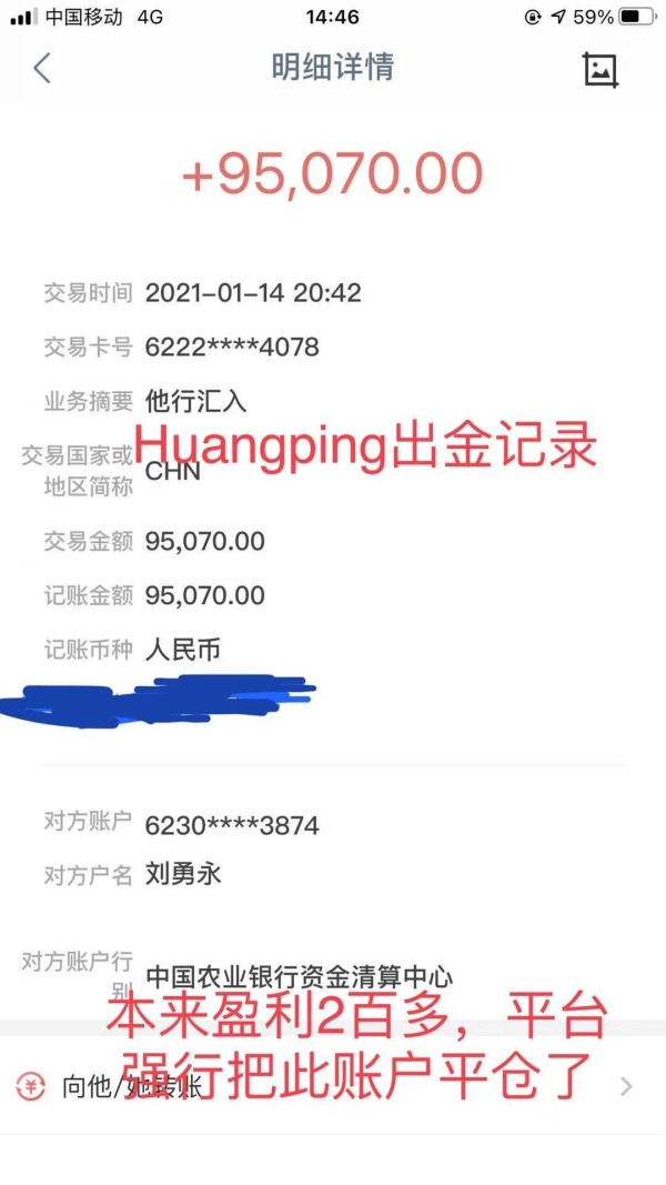 大通金融忽悠客户,太低劣的方式来占客户便宜:本来盈利的账号还在浮亏就直接强行平掉我们的,出金也没有提前告知就直接撸掉我们4个点,而且自行降低出金汇率,这样的格局眼光大通真的请不要在中国市场浪费时间了