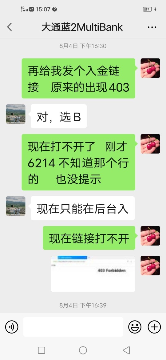 大通金融,几天时间无法入金,导致客户爆仓,期待大通领导给出合理解释,尽快给满意处理!