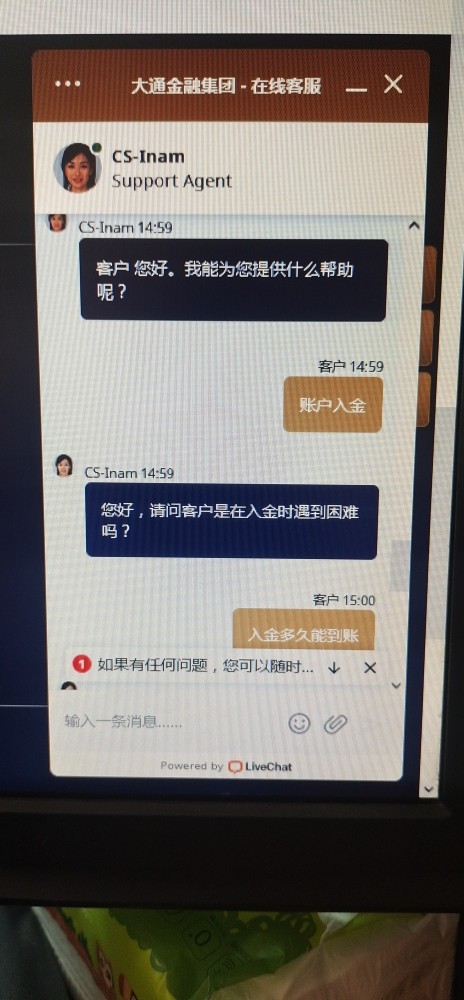 大通金融,几天无法入金导致客户爆仓!八月四号到现在,无人处理,都在逃避问题,推脱责任!客服承诺,开户保证出入金及时到账!