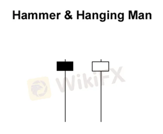 Hammer ( dinamakan ini karena berbentuk seperti palu) dan Hanging Man ( dinamakan ini karena terlihat seperti ada manusia yang digantung) terlihat persis sama tetapi memiliki arti yang sama sekali berbeda tergantung pada aksi harga di masa lalu.
