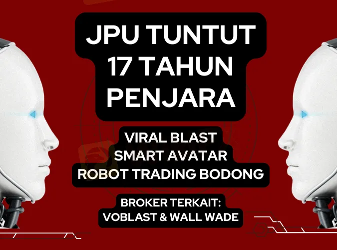 Ikhtisar:Setelah tertangkap saat dalam pelarian di Thailand, Terdakwa Putra Wibowo saat ini sedang menjalani proses pengadilan. Pihak Jaksa Penuntut Umum telah mengajukan tuntutan 17 tahun penjara dalam kasus investasi bodong modus robot trading Viral Blast yang juga memiliki kaitan dengan merek Smart Avatar.