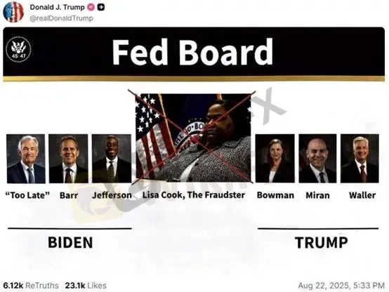 Donald Trump menunjukkan ketidakpuasan terhadap sikap kebijakan moneter The Fed saat ini dan terus memberikan tekanan. Pada 25 Agustus, Trump mengumumkan pemberhentian langsung anggota Dewan Gubernur Fed, Lisa Cook, yang sebelumnya ditunjuk oleh mantan Presiden Joe Biden. Tindakan ini didasarkan pada kewenangan Konstitusi AS dan Federal Reserve Act.