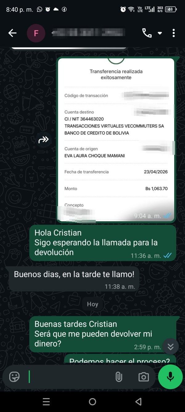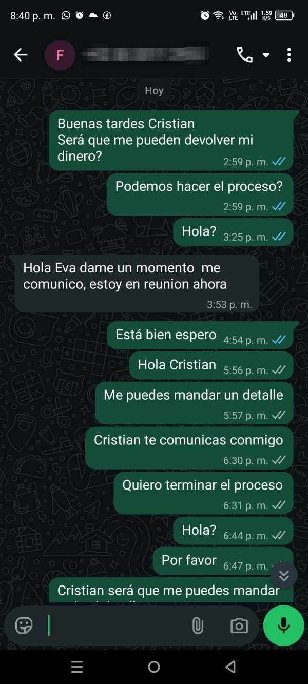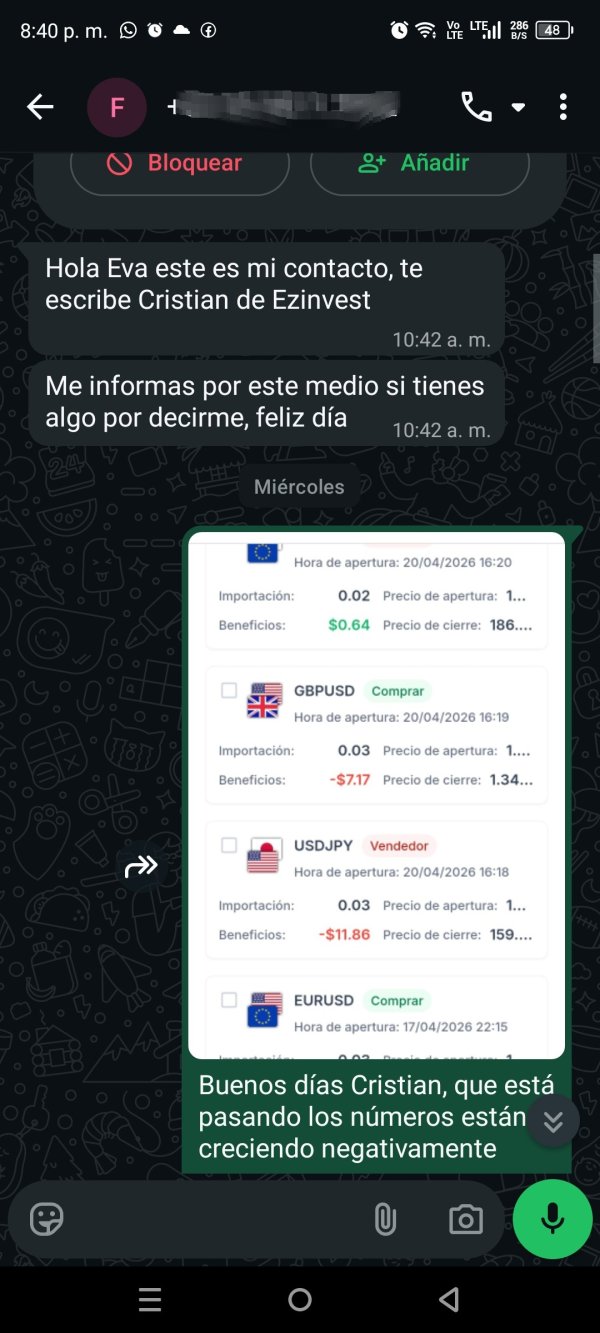Hola vengo a contar la mala experiencia que tengo con esta plataforma, inicie con una inversión de 115 dólares, pero me desanime a los pocos días porque las inversiones que me hacían están en negativo y para "recuperarme" me pedía que deposite más dinero y le dije que me quería retirar y cancelar mi deuda porque no tenía más dinero y lo que me dijo es que debería depositar un "monto soporte" para recuperar la totalidad de inversión y lo hice de 100 dólares más para retirarme y después me dice que debo esperar 3 días para que acepten mi solicitud y el dinero desapareció de mi cuenta, al día de hoy insisto y me llama y recién me indica que debo depositar una diferencia más mayor de lo que yo había depositado porque en su sistema lo dice, si lo haces por tranferencia bancaria se tarda otros 3 días y si lo haces por binance es inmediato y solo era esa la solución depositar para que pueda retirarme y lo hice pero no hay respuesta