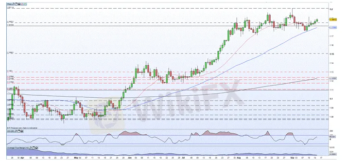 Recentemente, a causa del rialzo dell' EUR/USD, il tasso di cambio è rimbalzato dalla media di 50 giorni, e si è attestato sopra la media di 20 giorni all'apertura del mercato martedì, rafforzando il sentimento rialzista del tasso di cambio. La prima resistenza a breve termine è fino a 1,1920 registrata la scorsa settimana, dopodiché il tasso di cambio deve superare diversi massimi prima che si prevedano di tornare a 1,2000.