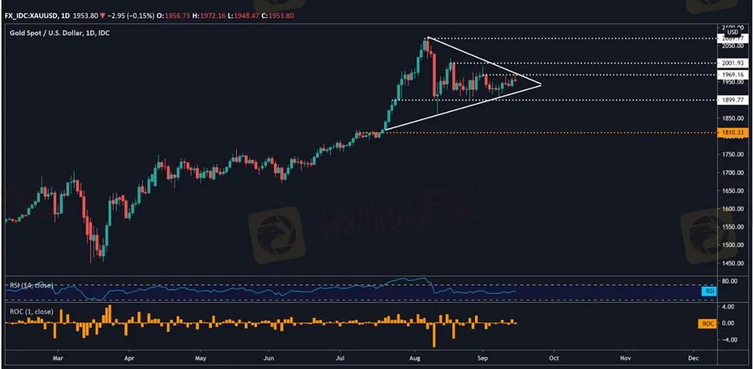 Il dibattito sulle elezioni presidenziali si terrà il 29 settembre. Prima di questo, i cambiamenti del divario di sostegno tra Biden e Trump potrebbe comportare rischi per il mercato. Se la concorrenza diventa sempre più agguerrita, i cambiamenti nella direzione dei sondaggi possono innescare un nuovo ciclo di volatilità e infondere incertezza nel mercato. Si prevede che un aumento della propensione al rischio aumenterà i prezzi dell'oro.