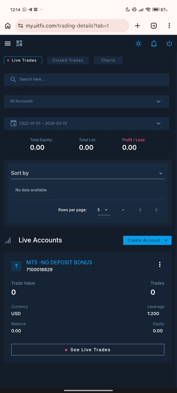 UITFXは2021年に設立され、香港に登録された規制されていないブローカーで、外国為替、金属、商品、指数、株式、仮想通貨の取引を提供しています。最大レバレッジは1:500で、ECN MICROアカウントでは最大1.5ピップのスプレッドをMT5取引プラットフォームで提供しています。デモ口座も利用可能で、ライブ口座を開設するための最低入金額はわずか$10です。