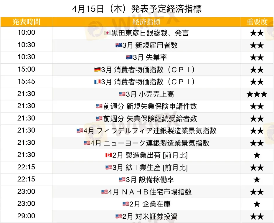 概要:【経済指標】4月15日(木)の経済指標