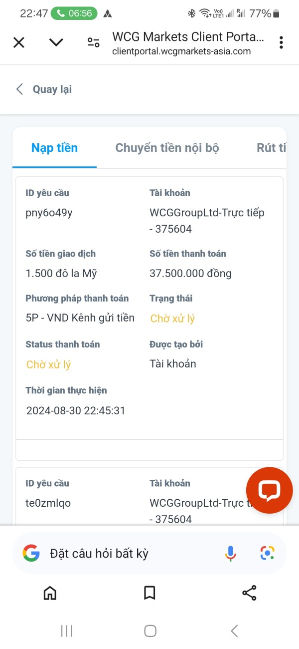 Tiênn nạp ko vào tài khoản khoản