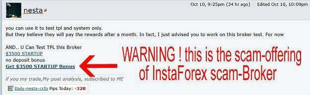 I wanna report the scam-broker - Instaforex - reccomemded by scammer Nesta. As you can see, scammer Nesta continues to offer to FF members Instaforex’s scam-proposal called "Startup Bonus" or "No Deposit Bonus" .