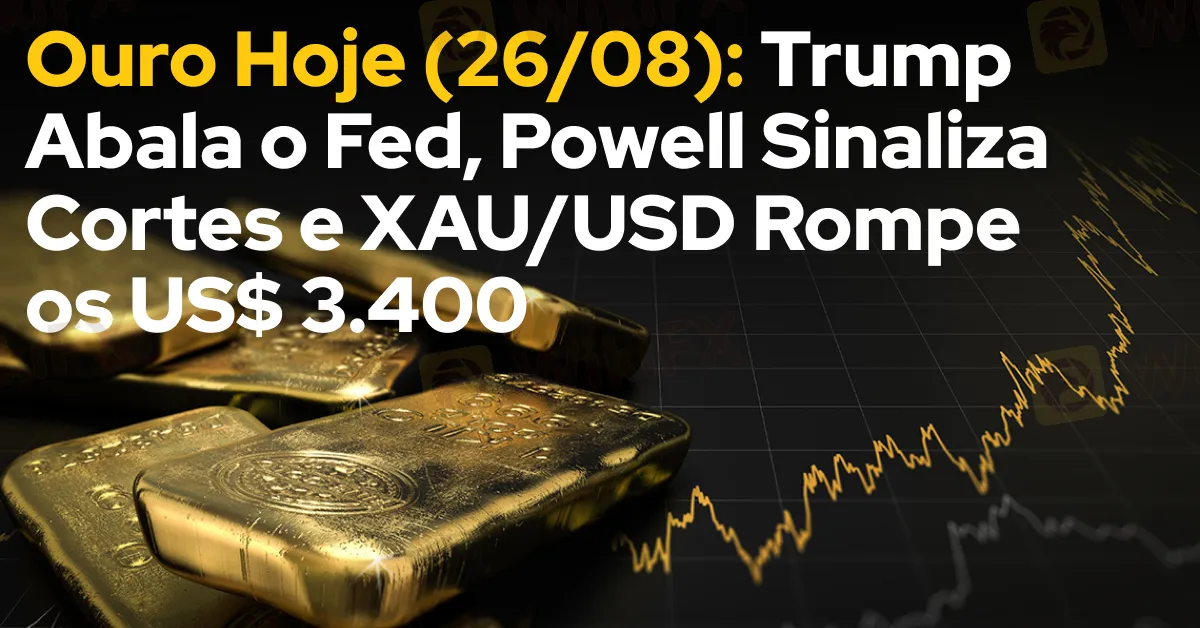 Ouro Hoje (26/08): Trump Abala o Fed, Powell Sinaliza Cortes e XAU/USD Rompe os US$ 3.400