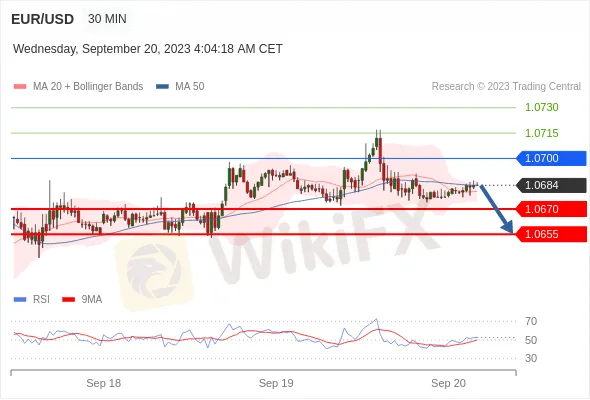 - EUR/USD ลดลง 13 ปี๊ป เป็น 1.0679, GBP/USD เพิ่ม 9 ปี๊ป เป็น 1.2392