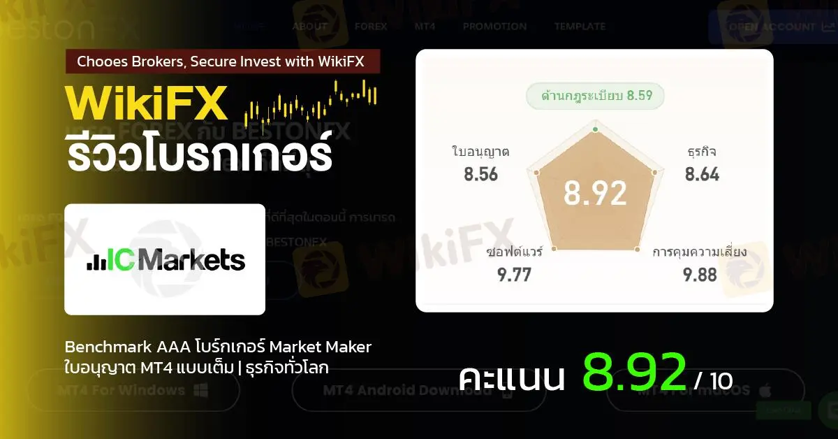 โดยสรุป โบรกเกอร์ IC Markets มีคะแนนประเมินบน WikiFX อยู่ที่ 8.92/10 อย่างไรโปรดใช้วิจารณญาณในการตัดสินใจ และระวังความเสี่ยงที่อาจจะเกิดขึ้น อ่านข้อมูลเพิ่มเติมเกี่ยวกับโบรกเกอร์คลิก https://www.wikifx.com/th/dealer/9641842942.html?source=tso4