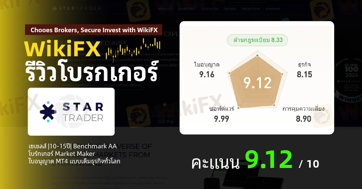 โดยสรุป โบรกเกอร์ STARTRADER มีคะแนนประเมินบน WikiFX อยู่ที่ 9.12 /10 อย่างไรโปรดใช้วิจารณญาณในการตัดสินใจ และระวังความเสี่ยงที่อาจจะเกิดขึ้น อ่านข้อมูลเพิ่มเติมเกี่ยวกับโบรกเกอร์คลิก https://www.wikifx.com/th/dealer/2277676718.html