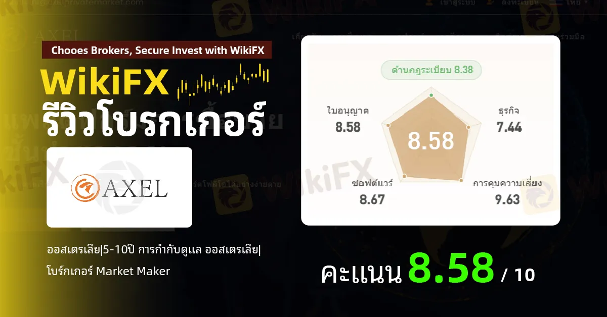 โดยสรุป โบรกเกอร์ AXEL มีคะแนนประเมินบน WikiFX อยู่ที่ 8.58 /10 อย่างไรโปรดใช้วิจารณญาณในการตัดสินใจ และระวังความเสี่ยงที่อาจจะเกิดขึ้น อ่านข้อมูลเพิ่มเติมเกี่ยวกับโบรกเกอร์คลิก https://www.wikifx.com/th/dealer/9201362451.html