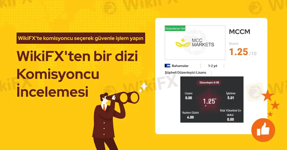 MCCM resmi lisans sahibi bir forex komisyoncusu değildir ve WikiFX araştırmalarına göre bu firmanın lisansı geçerli değildir. Ayrıca bu firmayla ilgili olarak son 3 ayda 76 farklı şikayet WikiFX yetkililerine ulaşmıştır. Bundan dolayı WikiFX bu komisyoncuya 1.25/10 gibi düşük seviye bir puan vermiştir.