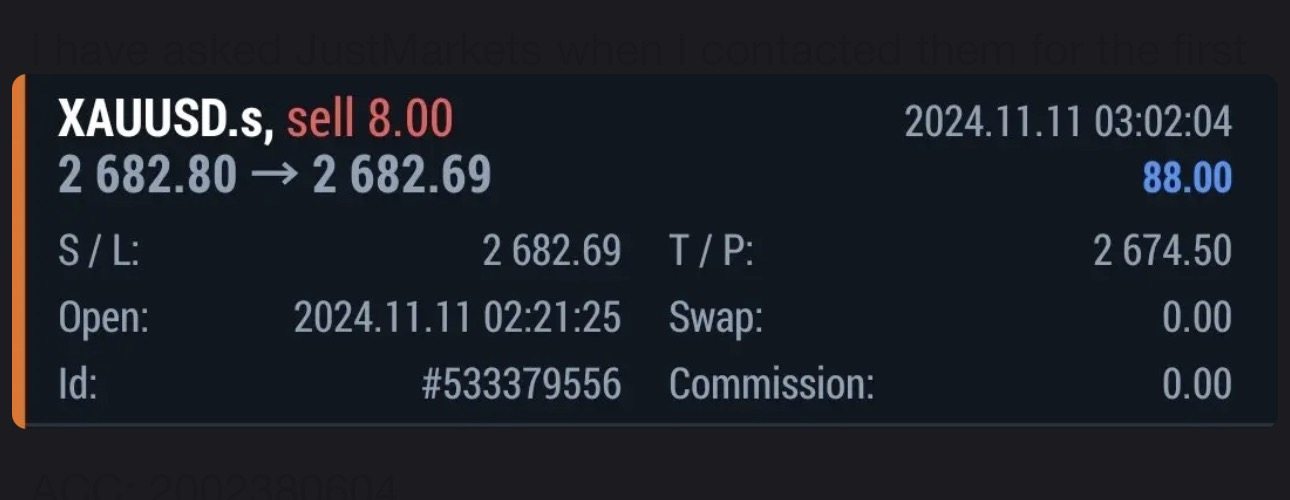 I had a sell position on XAUUSD for 8.00 Lots at the price of 2682.80 I have waited for this trade like 40-45 minutes till the Asian markets opened and the price started to drop and as soon as it crossed my entry price I put a SL at 2682.69 to protect my position. Once I have closed the trade modification the position was already closed even when the candle kept dropping and it reached my desired TP at 2674.5. I have contacted their support for almost a month till I got an answer on this matter yet they claim that when the SL was placed the price came back up to 2682.69 then it dropped again, recently I had a free time to check this out on MT5 strategy tester to check specifically how the candles formed, yet the candle never retraced to my SL and the price it stayed at for a few milliseconds was around 2682.61-2682.63 then it continued dropping. I checked this time stamp with multiple brokers that I trade with yet the price never came back to my SL during that duration.