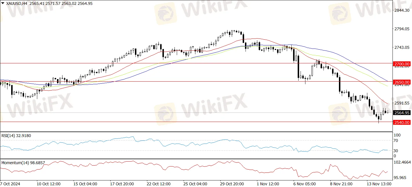 Giá vàng gần đây đã giảm xuống dưới mức thấp ngày 10 tháng 10 là $2.603 mỗi ounce, tăng tốc đà giảm sau khi phá vỡ mốc $2.600. Điều này mở đường cho mức thấp hai tháng là $2.536 mỗi ounce. Giá vàng tạm thời giảm xuống dưới mức Trung bình Đơn giản (SMA) 100 ngày ở mức $2.547. Nếu giá giảm xuống dưới $2.536, có thể tiếp tục giảm về mức $2.500. Chỉ số Sức mạnh Tương đối (RSI) đã rời khỏi đường trung lập, cho thấy xu hướng giảm, có thể dẫn đến nhiều đợt giảm nữa. Ở phía tăng, mức kháng cự đầu tiên là khoảng $2.600. Nếu người mua lấy lại mức này, giá có thể kiểm tra đường trung bình 50 ngày ở mức $2.650, tiếp theo là mức kháng cự gần $2.700. Một đột phá trên các mức này có thể mở đường đến mức cao ngày 7 tháng 11 là $2.710 mỗi ounce.