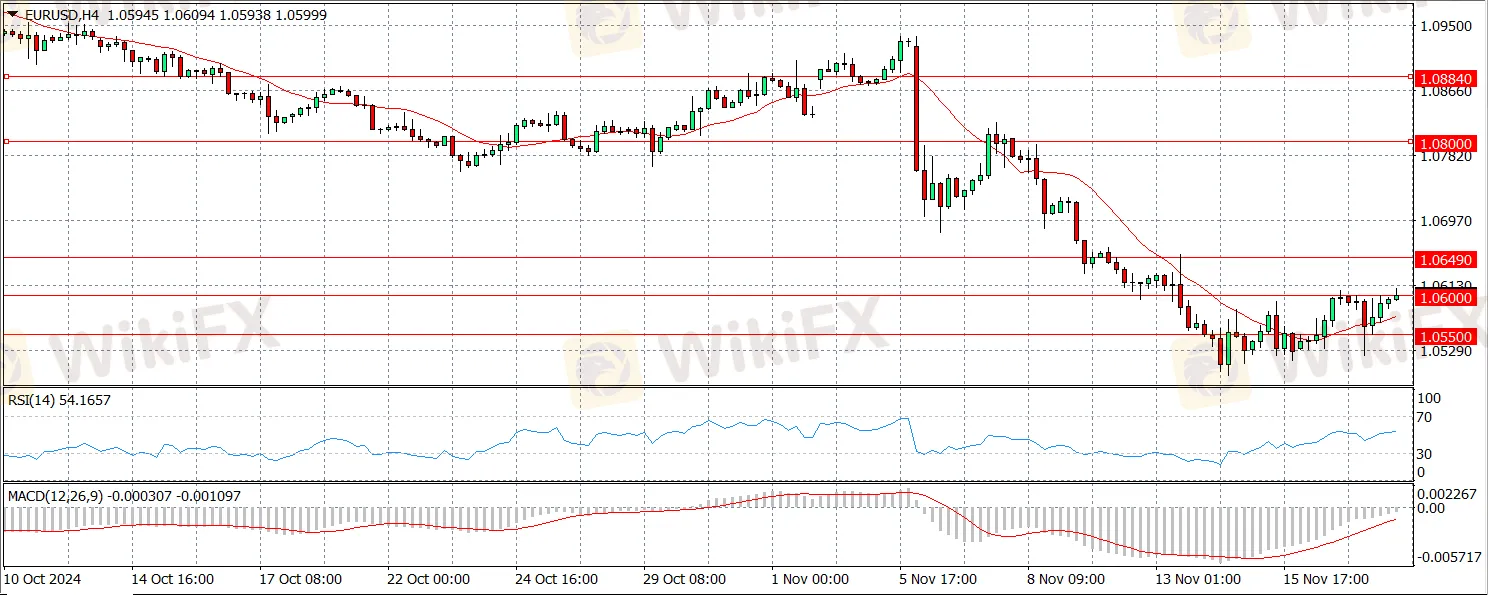 Cặp EUR/USD đã giảm gần 6.5% từ đỉnh trên 1.1200 vào tháng 9, chạm đáy gần 1.0500 trước khi hồi phục yếu lên 1.0600. Tuy nhiên, cặp này vẫn ở trong xu hướng giảm, giao dịch dưới mức EMA 200 ngày quanh 1.0900.