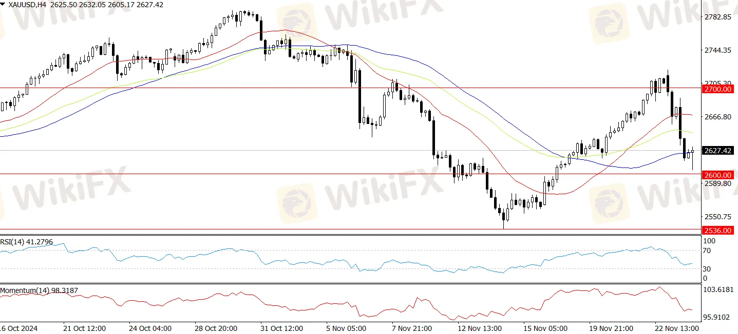 Vào thứ Hai, đà tăng của vàng đã bị chặn lại khi người bán đẩy giá xuống dưới mức $2.700/ounce, tiếp tục phá vỡ mốc $2.630/ounce. Khi phe bán kiểm soát và phá vỡ mức $2.630, ngưỡng hỗ trợ tiếp theo của vàng là $2.600. Nếu mức này không giữ được, giá có thể giảm xuống đường trung bình động 100 ngày ở mức $2.562/ounce, sau đó là mức thấp ngày 14/11 ở $2.536/ounce. Nếu phe mua lấy lại đà tăng và đẩy giá trở lại trên đường trung bình động 50 ngày, mục tiêu có thể là $2.700/ounce. Một cú bứt phá trên mức này có thể hướng tới $2.750, sau đó là mức cao kỷ lục $2.790/ounce. Tuy nhiên, các chỉ báo dao động như Chỉ số Sức mạnh Tương đối (RSI) đã chuyển sang xu hướng giảm, cho thấy phe bán hiện đang kiểm soát.