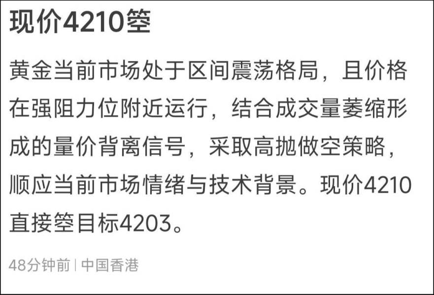 瑞哥在1小时之前布局的4210的现加价空单,稳稳洛带5点空间