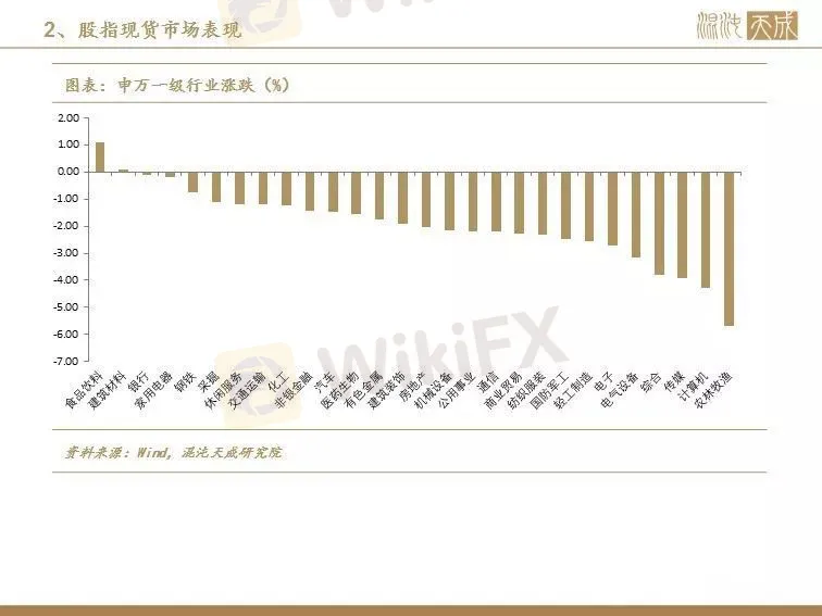 股指现货IF收跌0.69%报3698.49点,IH收涨0.19%报2729.13点,IC收跌2.33%报5298.5点。申万28个一级行业仅食品饮料、建筑材料行业飘红,下跌的行业中农林牧渔、计算机、传媒行业跌幅靠前,跌幅分别为5.7%、4.29%、3.91%。综合权重来看,非银金融行业为拖累指数主力。市场情绪回落,两市成交额8125万亿元,融资余额增加40亿元,北上资金结束净流出,昨日合计净流入27.95亿元。