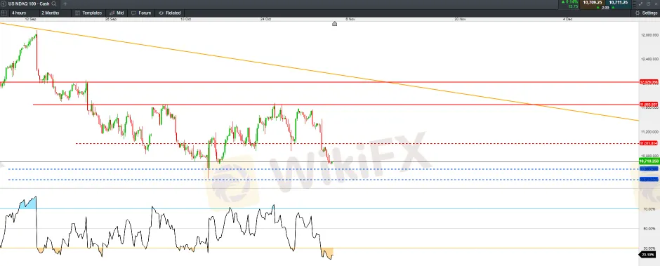 纳斯达克指数 —— 4小时图来源:CMC Markets(11月4日)