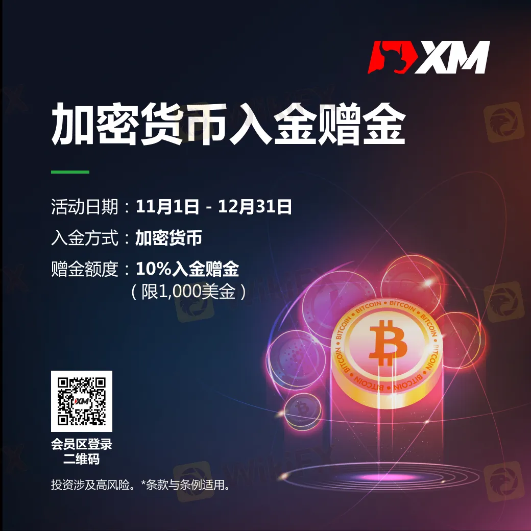 摘要:XM 年末大放送!只要在2023.11.01至2023.12.31期间,使用加密货币方式入金,可获得10%赠金,最高达$1,000。