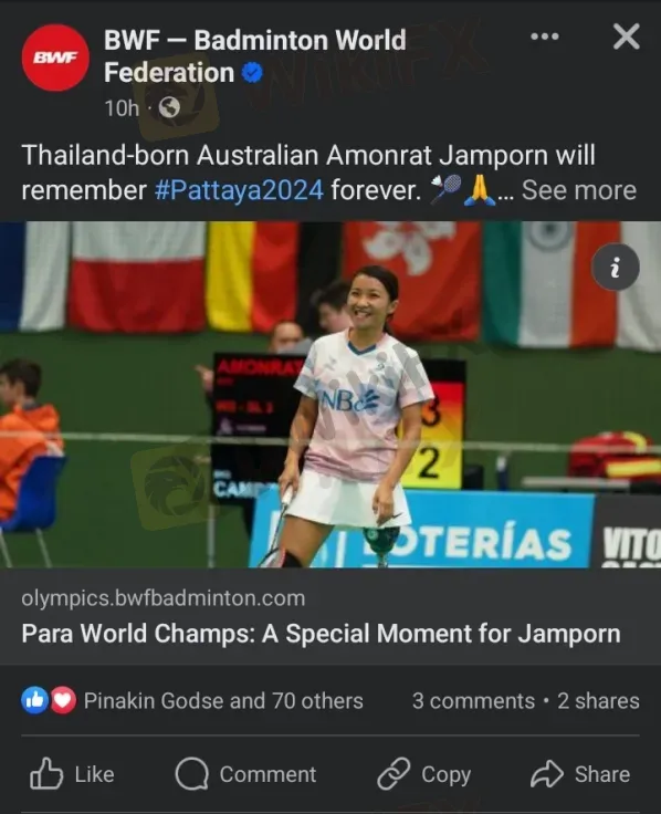 恭喜代表澳大利亚的残奥会选手Nid Jamporn在NSDF Royal Beach Cliff BWF Para Badminton World Championships 2024 SL组女子单打比赛中夺得胜利。在这场充满激情和竞争的SL3(下肢损伤组)比赛中,Nid展现了卓越的球技和顽强的毅力,成功地为自己赢得了这一场比赛。BCR作为赞助商,我们为Nid的精彩表现感到无比自豪和高兴。她所展现出的决心、勇气和不屈不挠的精神是我们深深敬佩的。在面对种种困难和挑战时,Nid从未动摇过,始终坚持自己的目标和梦想。这种坚韧不拔的态度与BCR近17年来的企业理念——坚信无限可能性(Boundless)、怀有坚定的信心(Confident)以及相互信赖与尊重(Respected)完美契合。