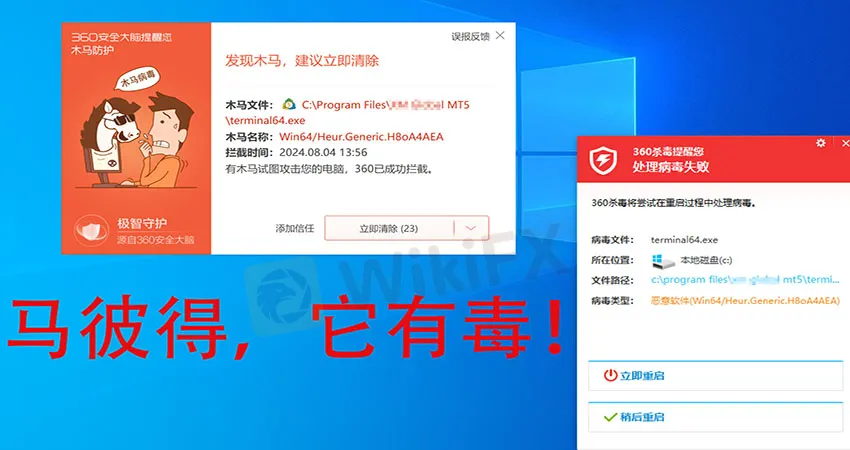 就在刚刚打开某外汇平台MT5准备复盘的时候,电脑杀毒软件再次报毒(文末曝光名字)。想着前天晚上发生的事,心里不禁后怕!好吧,趁着心有余悸,跟大家聊点交易软件方面的话题。希望有用!