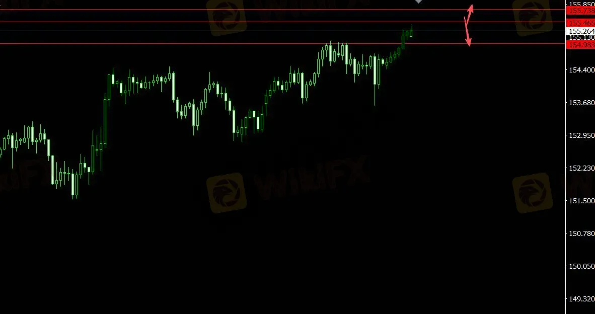 美元指数受支撑,日元上涨,关注支撑位154.980,4小时看多至155.740;关注压力位155.470,4小时看空至154.650。