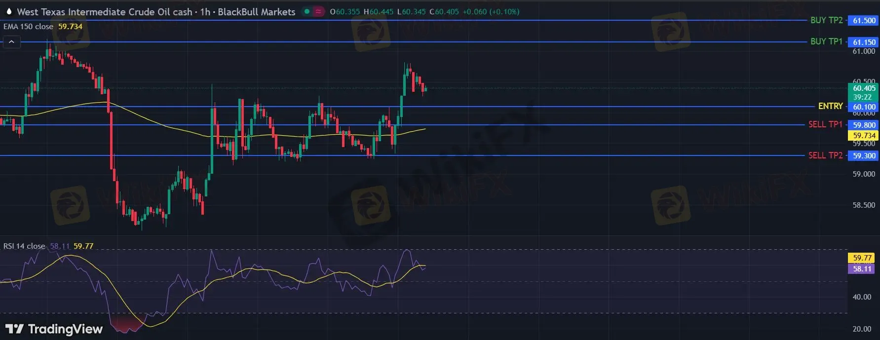 在 60.10 下,看空,目标价位定在 59.80 ,然后为 59.30。